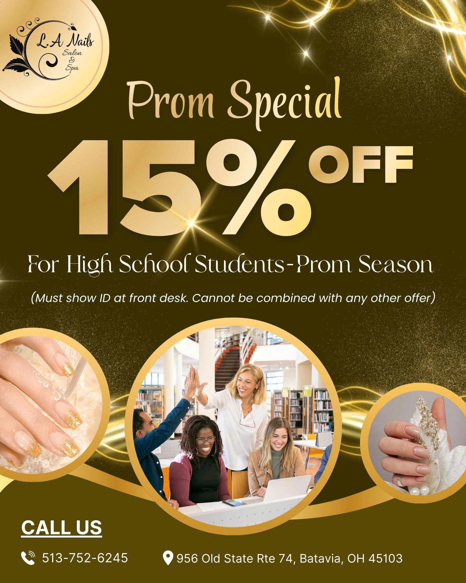 L A Nails Salon & Spa brings you a New Brand of salon, a uniquely vibrant and relaxed environment with a modern luxurious feelback to our industry. We have an exclusive vision to recognize and re-establish what the industry has been lacking for many years. Our priority is to make our clients feel pampered and relaxed while getting beautified here at our salon. We will maintain our progressiveness and edginess by creating the latest trends and offering an unforgettable experience throughout your stay with us. You belong here, you belong in luxury, you deserve pampering and excellence. Welcome to one of the best Nail Salons in Batavia, OH 45103! Our modern salon offers a variety of services and treatments, including signature spa pedicure and manicures, fashionable nail designs, and top name brand products. Our salon offers a personalized approach to beauty and wellness, helping you to look and feel your best. Our priority is your safety and comfort, and we adhere to the highest industry standards of sanitation and disinfection. Our warm, welcoming atmosphere is sure to make your experience enjoyable and memorable. Book an appointment today and let us take care of you!